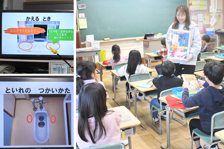 学校生活で気を付けることや、お道具箱の整頓について、担任の先生のお話を聞きました。みんな真剣にお話を聞いています。