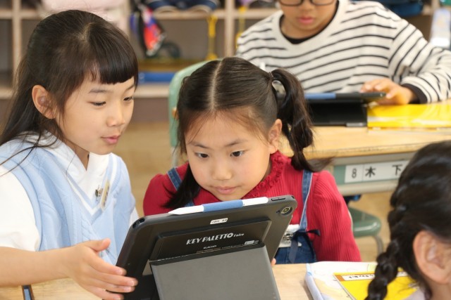 社会の「あんじょう」の教科書はデジタル教科書になります。みんな興味津々で取り組んでいました。