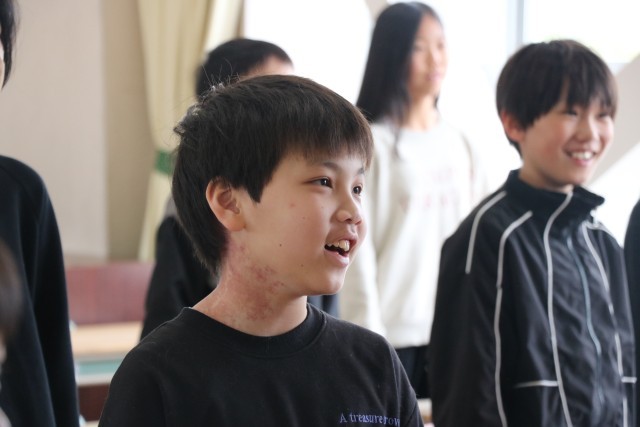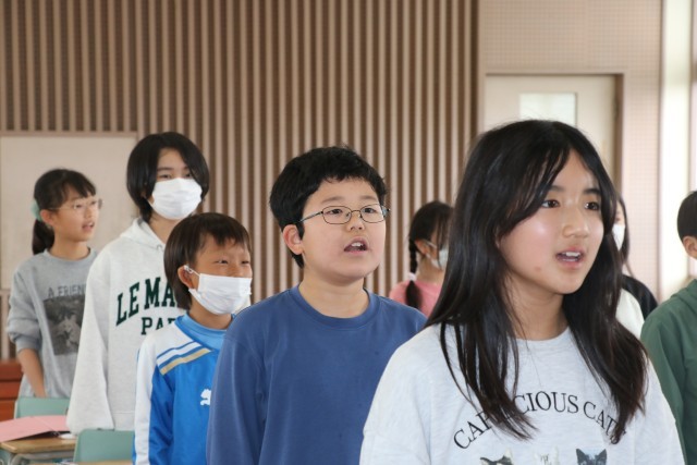 音楽では、発声練習や今月の歌を歌いました。みんな笑顔で元気いっぱい歌うことができました。
