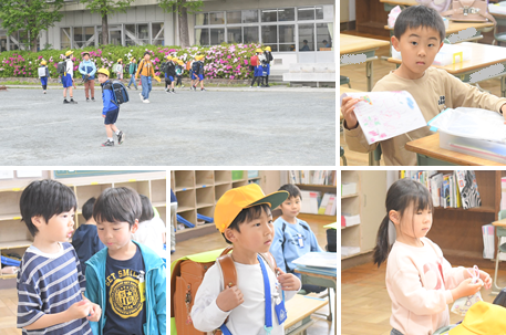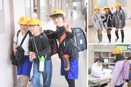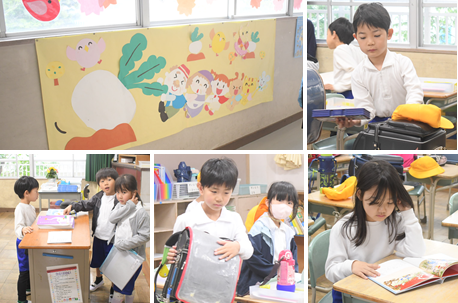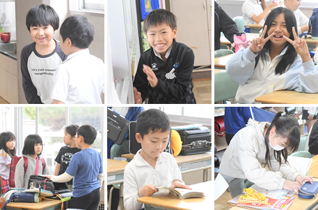 朝の登校から、教室に入って提出物を出し、1時間目の準備をしている様子です。忘れ物はなかったかな?