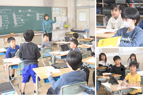 私たちの住む地域の学習です。学校のまわりには、どのような建物や場所があるか発表しました。大池公園、昭和公園、ららぽーと、太平寺など、たくさん場所が出てきました。