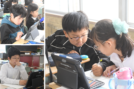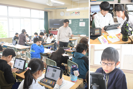 立体の体積を求める学習です。立方体でも直方体でもない立体の体積をどのように求めればよいのか。タブレットに配信された立体を見て、求め方を考えています。