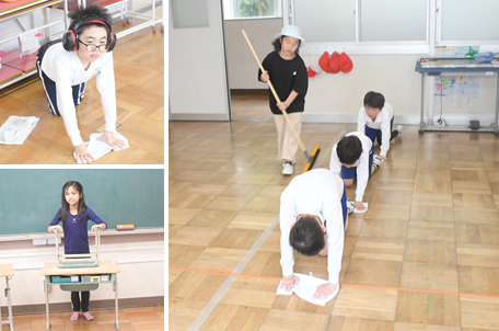 杉の木学級の清掃の様子です。みんなで協力して教室をきれいにしています。