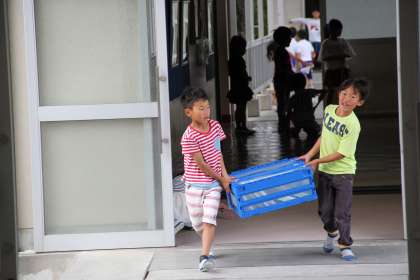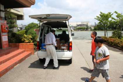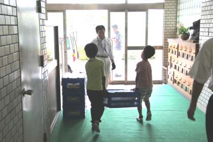 「今日はどんな本を持ってきてくれましたか」アンフォーレから定期的に本が届きます。各学年3週間に1度ぐらい新しい本と交換してもらえます。本が大好きな中部っ子は、アンフォーレ便がやってくるのをとっても楽しみにしています。「いつも運んできてくれてありがとう!」
