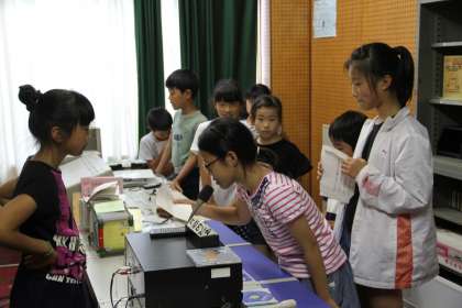 お昼の放送で4年3組と4年4組が級訓の紹介をしました。マイクの前でどきどきしながらも、「自分のクラスはこんなクラスにしたいな」と願いをこめた級訓について話をしました。