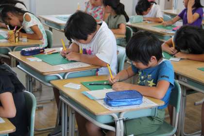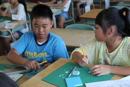 消しゴムはんこクラブの様子です。