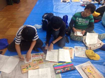 思い出を絵葉書にして、お家の人におくります。作手で投函しますので、子どもの方が早く着きますが楽しみにしてください。