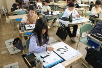風とゴムの力で動く車をつくりました。車が完成すると実験をします。