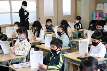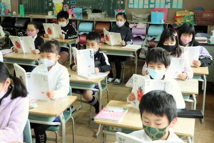 今日は、みんなの前で発表しました。発表の後で、みんなから話の内容や話し方について良かったところを出し合いました。