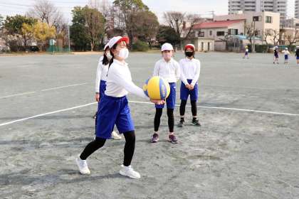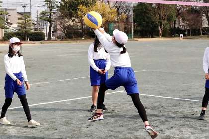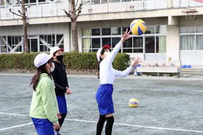バレーボールはボールを落とせない、つかめないというボールゲームなので、意外とゲームが成立するのが難しいです。ワンバウンドまではよいなど、ルールを修正してみんなで楽しめるように工夫していました。