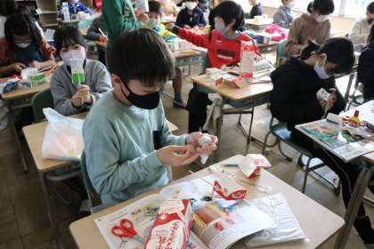 4年2組 図工 「牛乳パックで パックパク」 2