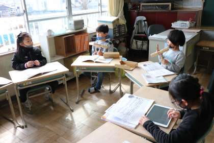 2年4組 音楽 「楽きの音をあわせてえんそうしよう」 2
