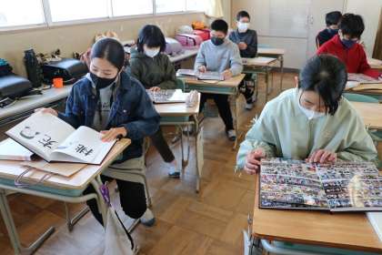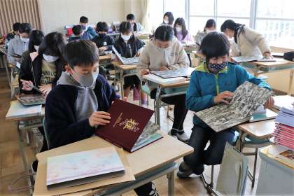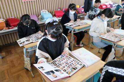 今日は各学級で卒業アルバムが渡されました。本校の卒業アルバムは思い出の写真と自画像と卒業文集が一体となったタイプです。