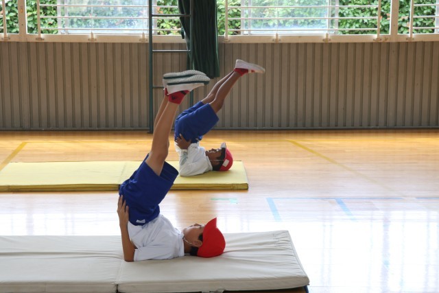 2年生が学年合同で、マット運動を行いました。みんな元気いっぱいマット運動に取り組...