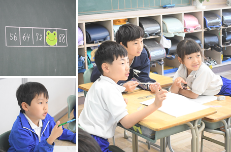 「かくれた数は何でしょう?」ある規則に従って並んでいる数字のかくれた部分が何かを...