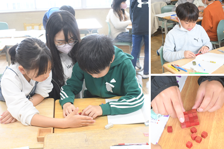 立体の体積を求めるために、1㎤のブロックを並べ、積み重ねて、いくつあるのか数えて...