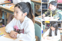 学校探検の準備をしています。2年生は、1年生と一緒に学校内のいろいろな場所を案内...
