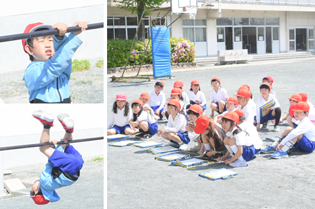 鉄棒に取り組んでいます。「ちきゅうまわり」と「ブランコ」という技に挑戦しました。...