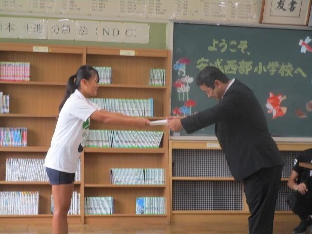 今日は学校朝の会がありました。はじめに、校長先生から、昨日来校されたお客様から、みんなが頑張って勉強する姿を褒めてもらえたことについてお話がありました。次に、任命や表彰を行いました。