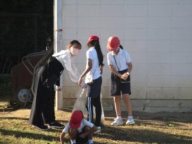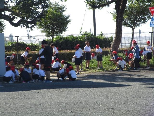 運動会に向けて、全校で草取りをしました。わんぱく山を覆う草や校庭に生える草を、一生懸命抜きました。みんなで学校をきれいにすることができました。