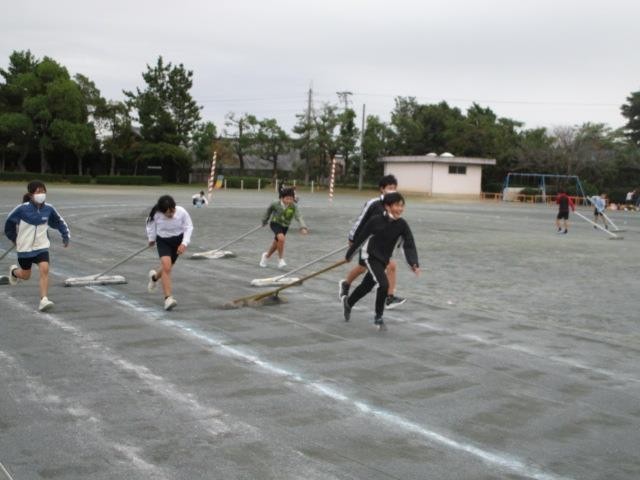 明日の運動会に向けて準備をしました。5・6年生のみなさんが、一生懸命運動場を整えたり、必要な物を運んだりしてくれました。