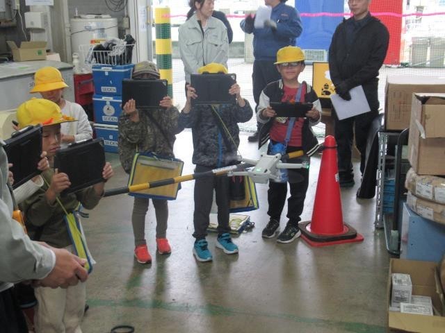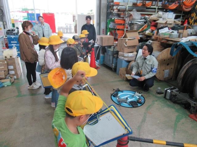 学区にある「晴電舎」さんを訪問させていただいたグループもあります。ドローンの操作の仕方を実演を交えて教えていただきました。児童は、興味津々の様子でお話を聞いていました。