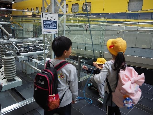 ドクターイエローや本物の電車の車両も展示されており、興味津々の様子で見学することができました。