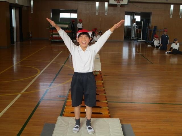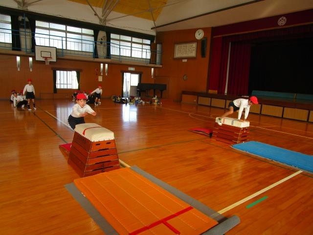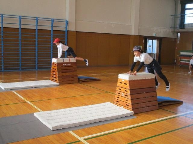 4年生が体育館で跳び箱運動をしていました。自分の目標の段に挑戦し、着地もきれいにできるよう
