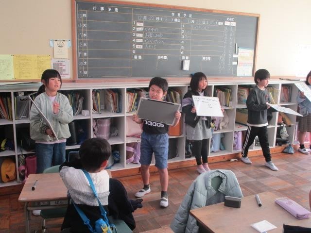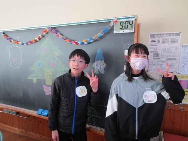 2学期も残り2日になりました。いろいろな学級でレクリエーションやお楽しみ会をしていました。「何でもバスケット」や「伝言ゲーム」などをして、盛り上がっていました。