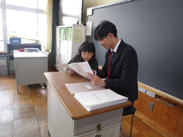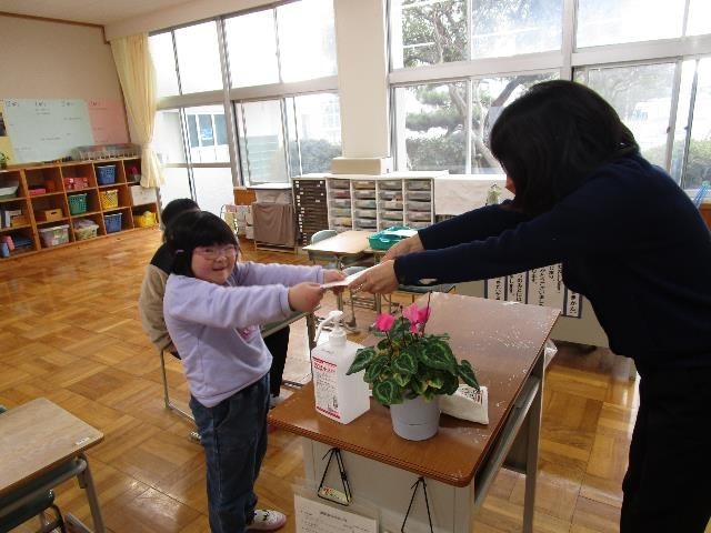 学級活動では、担任から通知表が手渡されました。2学期にがんばったことや努力したこと、3学期のめあてなどを話しながら渡していました。