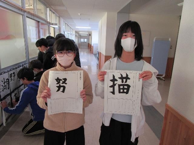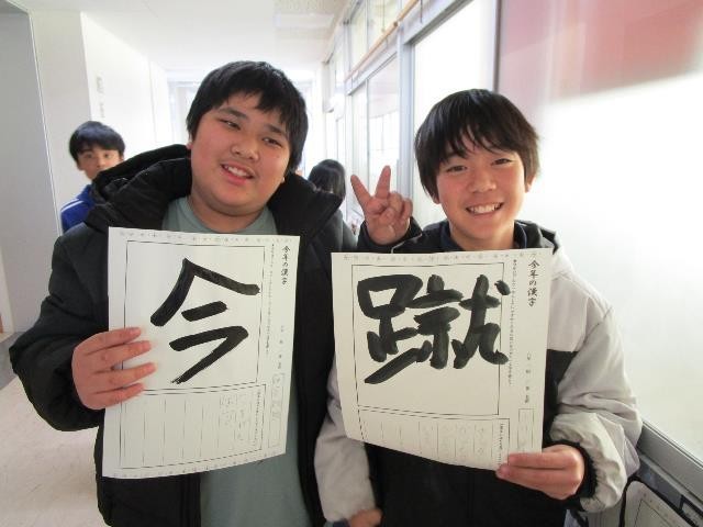 6年生が、「今年の漢字」を紙に書いていました。それぞれが思いを込めた漢字を決め、習字で大きく書きました。