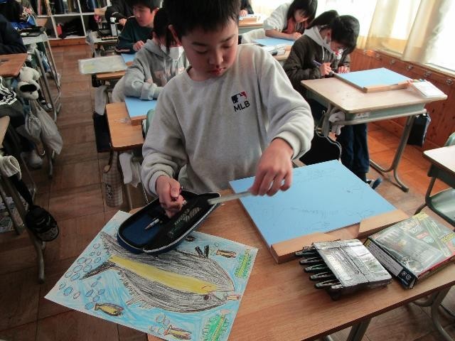 5年生が、図画工作で版画に取り組んでいました。下絵を描いた版木を、彫刻刀で彫っていきます。5年生のテーマは、「生き物」です。どのような版画ができるか、楽しみです。