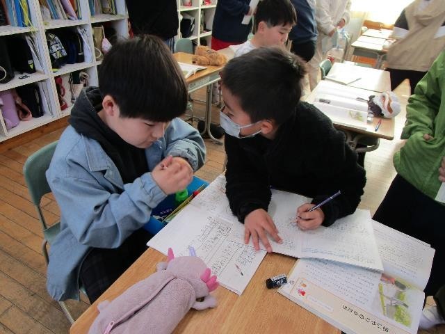4年生が道徳で「思いやりのかたち」について考えていました。思いやりとはどのようなものか、友達と意見交換したり、みんなで話し合ったりしました。