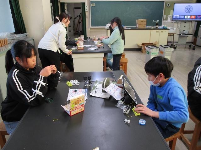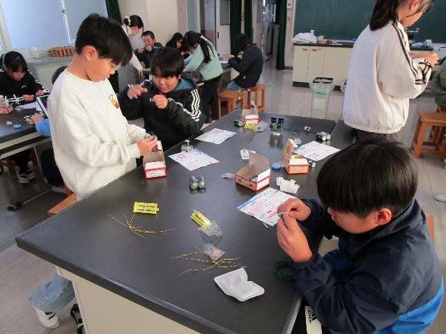 5年生が理科で「電流を生み出す力」について学習していました。電磁石をつくるために、コイルに銅線を巻きつけました。細かい作業を丁寧に行っていました。