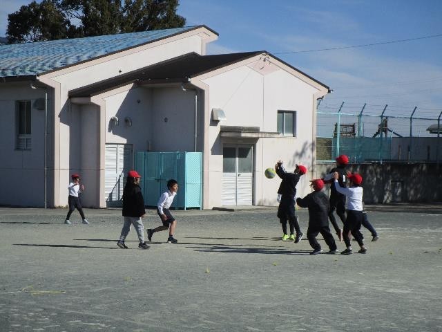 今日も寒い日になりましたが、休み時間は外で元気よく遊んでいる子がたくさんいました。ビオトープの池で、氷や生き物を探している子もいました。