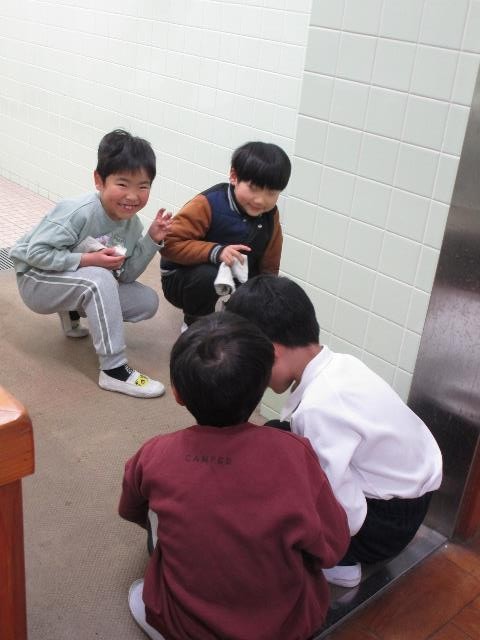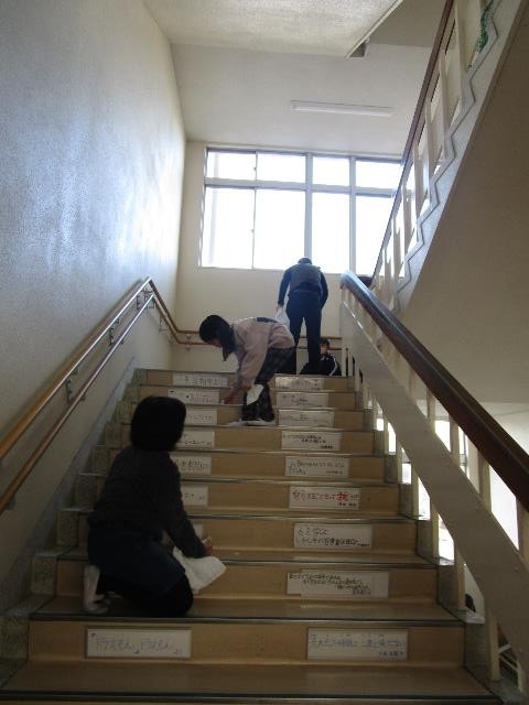 教室だけでなく、廊下・階段・昇降口・トイレの床などもみんなで磨き、とてもきれいになりました。水が冷たく、スポンジや雑巾を洗う時は大変でしたが、みんな一生懸命取り組むことができました。
