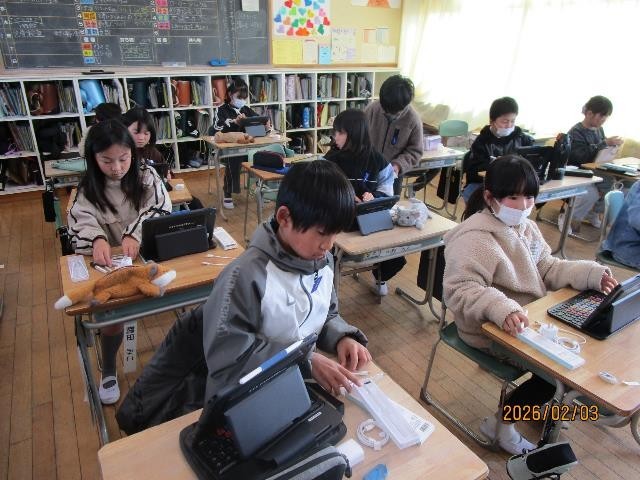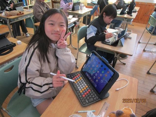 今週は、学年ごとにマイタブレットの更新作業をしています。貸与されていたものを返却し、新しいタブレットを受け取ると、歓声が上がっていました。