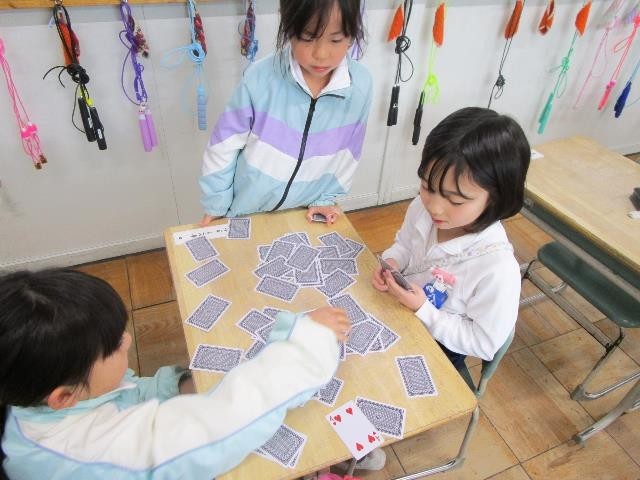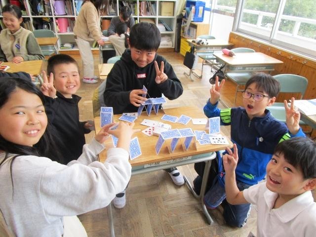 今日は、久しぶりに雨が降りました。休み時間は、図書室で本を読んだり教室でトランプなどをしたりして過ごしました。