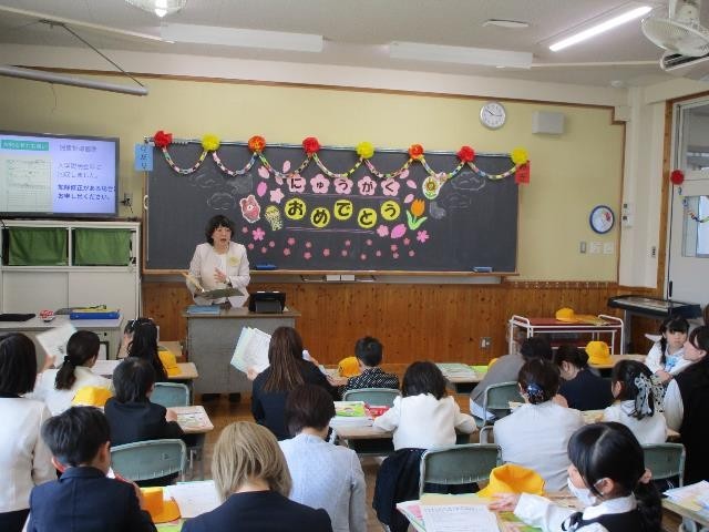 入学式・始業式のあとは、学級の発表と学級活動を行いました。新しい担任のあいさつや学年通信・教科書等の配付です。新しいクラス、新しい担任に、どの子もどきどきわくわくしている様子でした。