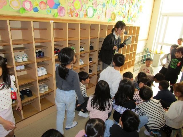 1年生は、ロッカーや靴箱の使い方を習いました。朝は、6年生が支度を手伝いに来てくれます。早く学校生活に慣れるといいですね。
