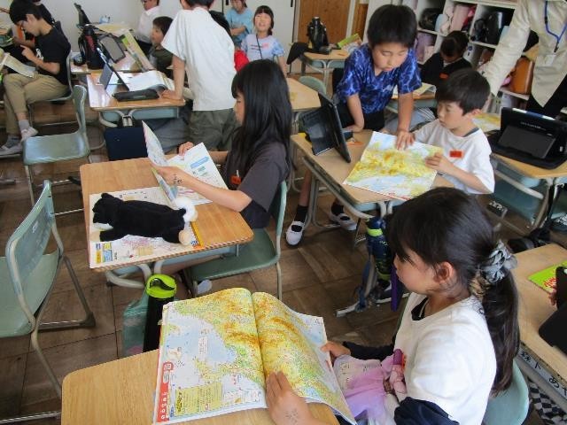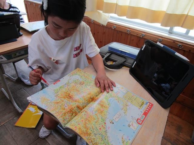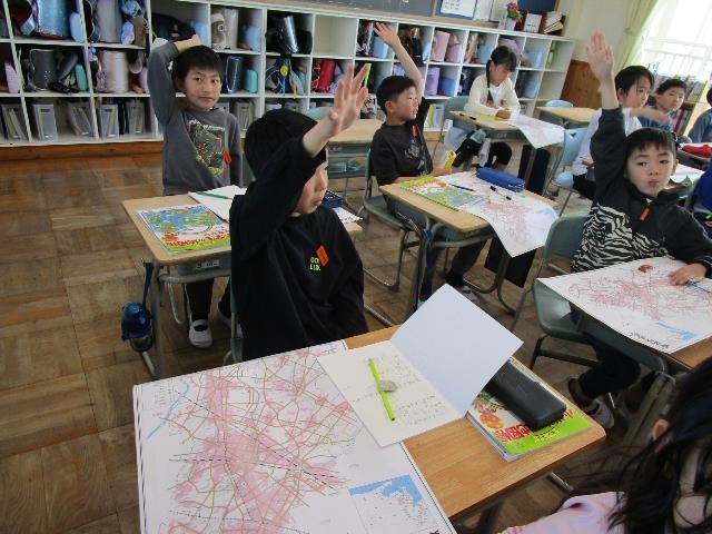 3年生は、初めて学習する教科があります。その中の一つである社会科の学習が始まりました。今日は、地図を広げていろいろな地名を探したり、安城市の位置を確認したりしていました。