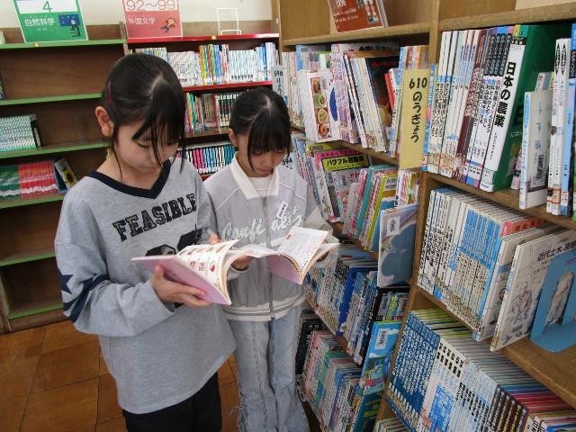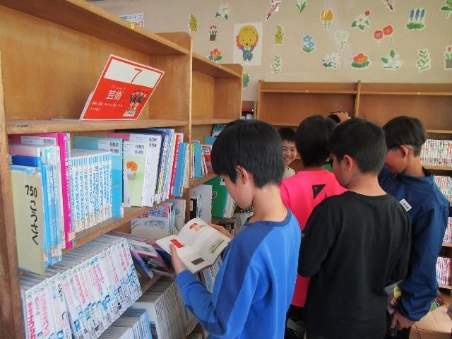 6年生が図書室のオリエンテーションに参加しました。毎年、年度初めに学校司書から図書室の使い方等について話を聞く時間を設け、全学年が実施しています。図書室の利用のきまりや分類の仕方などについて教えてもらい、早速読みたい本を探しました。