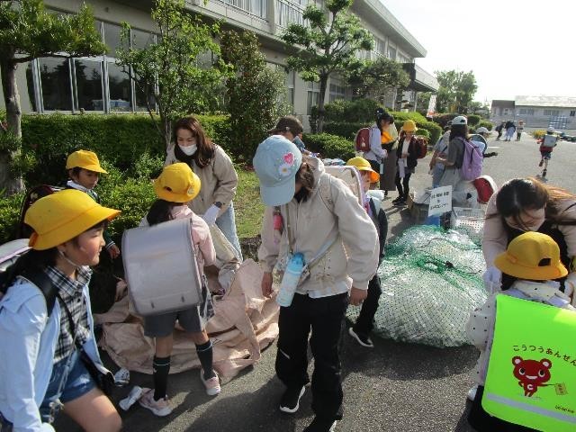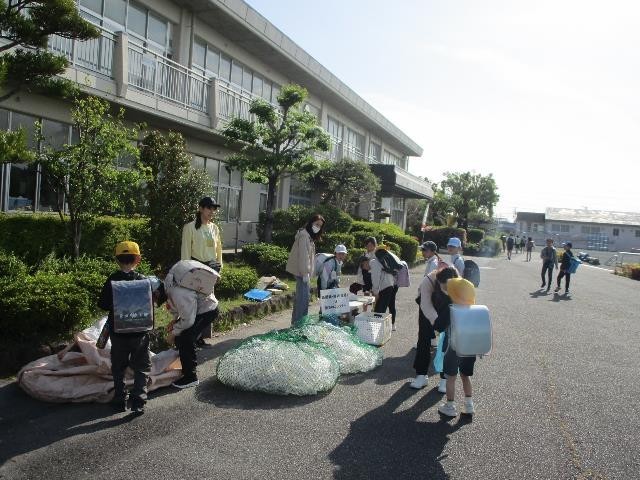 週の半ばになり、ペットボトルや空き缶を持ってきてくれる子が増えました。ボランティアのおうちの方も朝から回収に協力してくださっています。