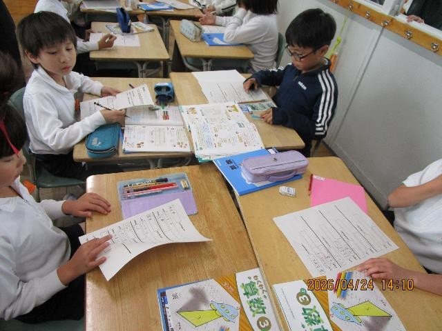 3年生は、算数のわり算の問題の解き方について、グループで話し合って考えました。