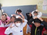 1年生が、転がしドッジボールをしていました。転がってくるボールに当たらないように、一生懸命よけていました。