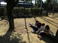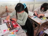 3年生が理科で、ゴムを使って車を走らせる実験をしていました。のびたゴムが元に戻ろうとする力を利用して、どのぐらい車が走るか確かめました。