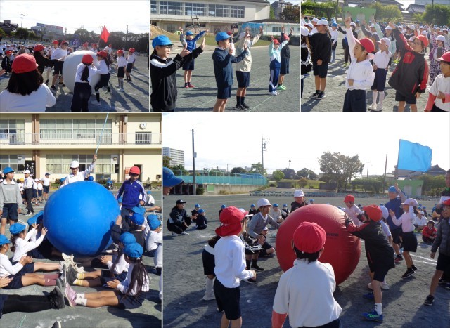 運動会の予行演習が行われました。児童会種目「大玉送り」では本番さながらの盛り上がりで大玉をペアで楽しく送る様子がありました。当日が楽しみです。