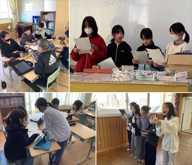 2月6日(金)は学習発表会です。各学年で学習発表会の練習に熱が入っています。5年生では自分たちの発表の様子を動画で撮影して確認をし、よりよくなるように修正をする姿がありました。