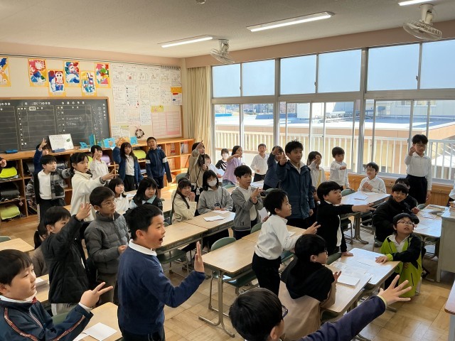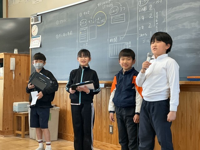 今までの思い出を話しながらお手紙の交換会をしました。その後は、笑顔で終われるようにじゃんけん大会です。勝利者インタビューでは、一年の思い出を堂々と発表していました。