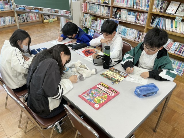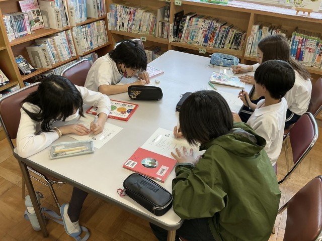 図書館オリエンテーションでは、本の分類について再確認したり、味見読書を行ったりしました。